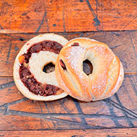 北海道産あんこと、なめらかクリームチーズを包み込みました。意外な組み合わせのようですが、チーズの塩気があんこの甘さを絶妙に引き出してくれる、クリーミーで優しいお味のベーグルです。